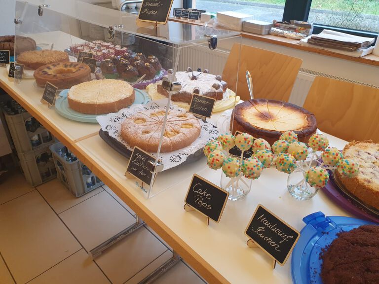 Im Dorfgemeinschaftshaus gab es Bücher und Dekoartikel zu bestaunen und zu kaufen und im Clubraum gab es ein Café mit einem riesigen Kuchen- und Torten Büffet. Draußen gab es Essen und Getränke in einer bemerkenswert guten Qualität, wie man sie auf den großen Weihnachtsmärkten suchen muss. Auch die Auswahl war sehr groß. Und all das wurde von den Besuchern gerne angenommen.
