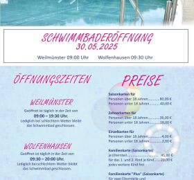 Endlich ist es wieder so weit! Das Freibad in Wolfenhausen eröffnen am Freitag, den 30. Mai 2025 die Badesaison. Wolfenhausen: täglich...